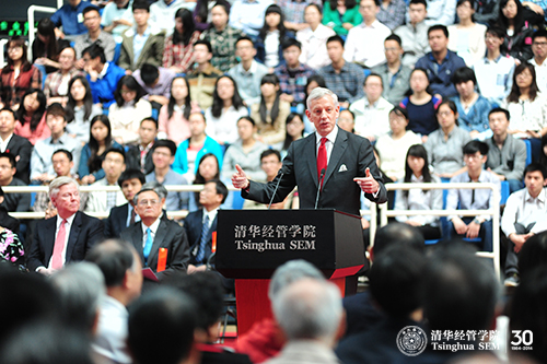 Dean David Schmittlein of MIT Sloan School of Management, also a member of the School’s Advisory Board, said in his remarks that “tthe accomplishments of Tsinghua SEM during the past three decades have been extraordinarily impressive; even astounding.” Dean Schmittlein also praised the collaboration between the two schools in faculty development, international MBA program and action learning projects such as the China Lab. He also anticipates a closer and long-lasting partnership between MIT Sloan School and Tsinghua SEM in the future.