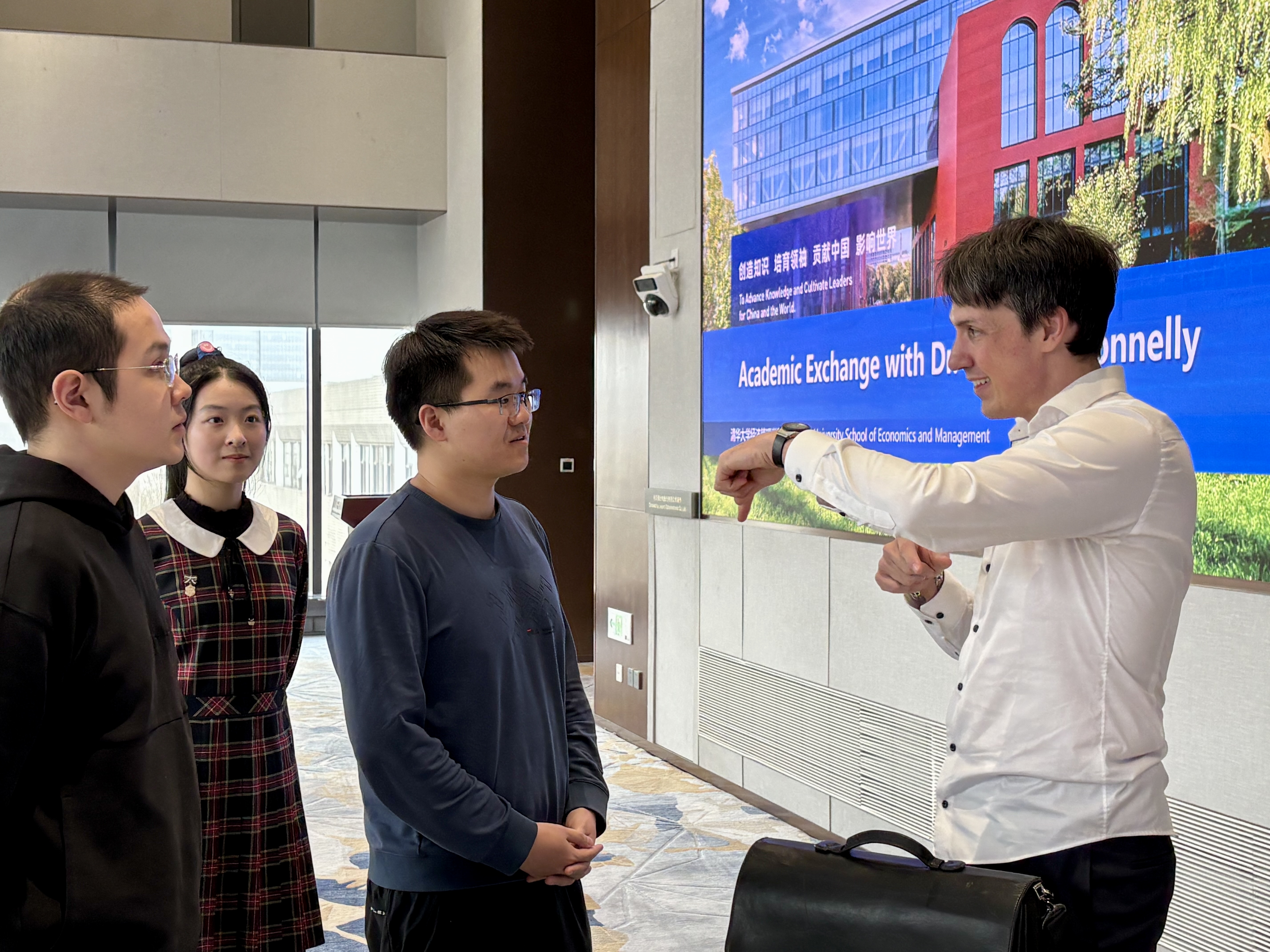 Faculty and students from Tsinghua University School of Economics and Management (Tsinghua SEM) held an academic discussion with Brandon Donnelly, an expert in artificial intelligence and machine learning, on March 13 in Beijing. The discussion delved into how new technologies are transforming academic research and business practices, with a focus on AI frontier trends and their implications for management disciplines. Approximately 100 attendees, including faculty, students, alumni, and industry representatives, participated in the event.