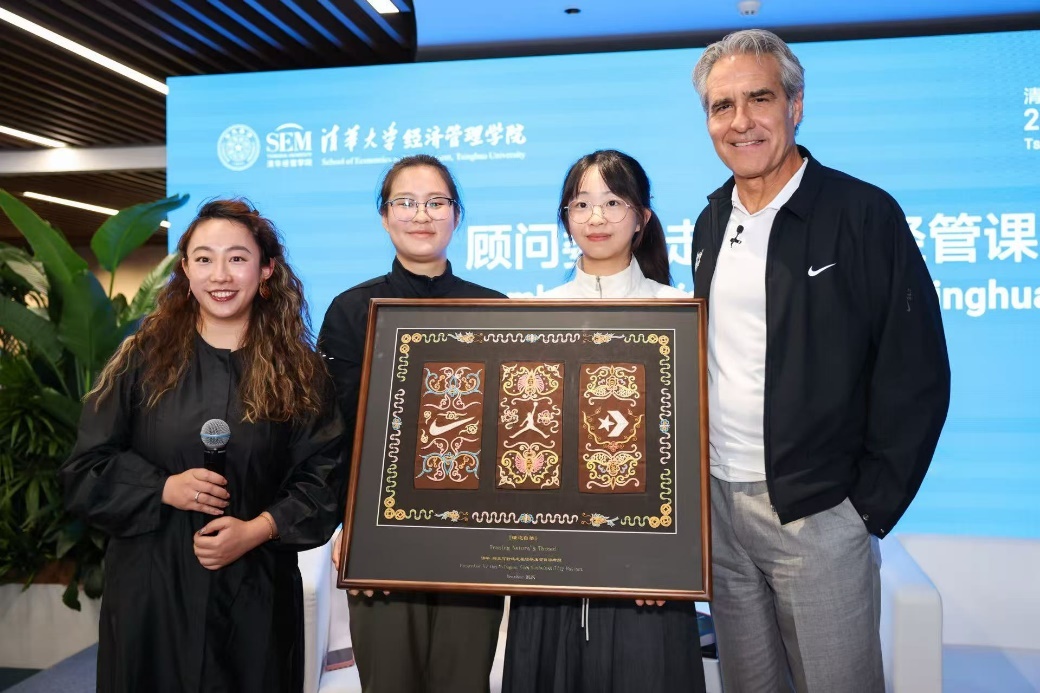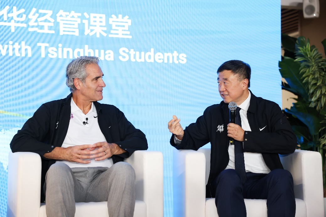 顾问委员会委员、耐克集团总裁兼首席执行官贺雁峰(Elliott Hill)走进清华经管课堂,以“共筑运动未来”为主题,与百余名经管成人自拍视频