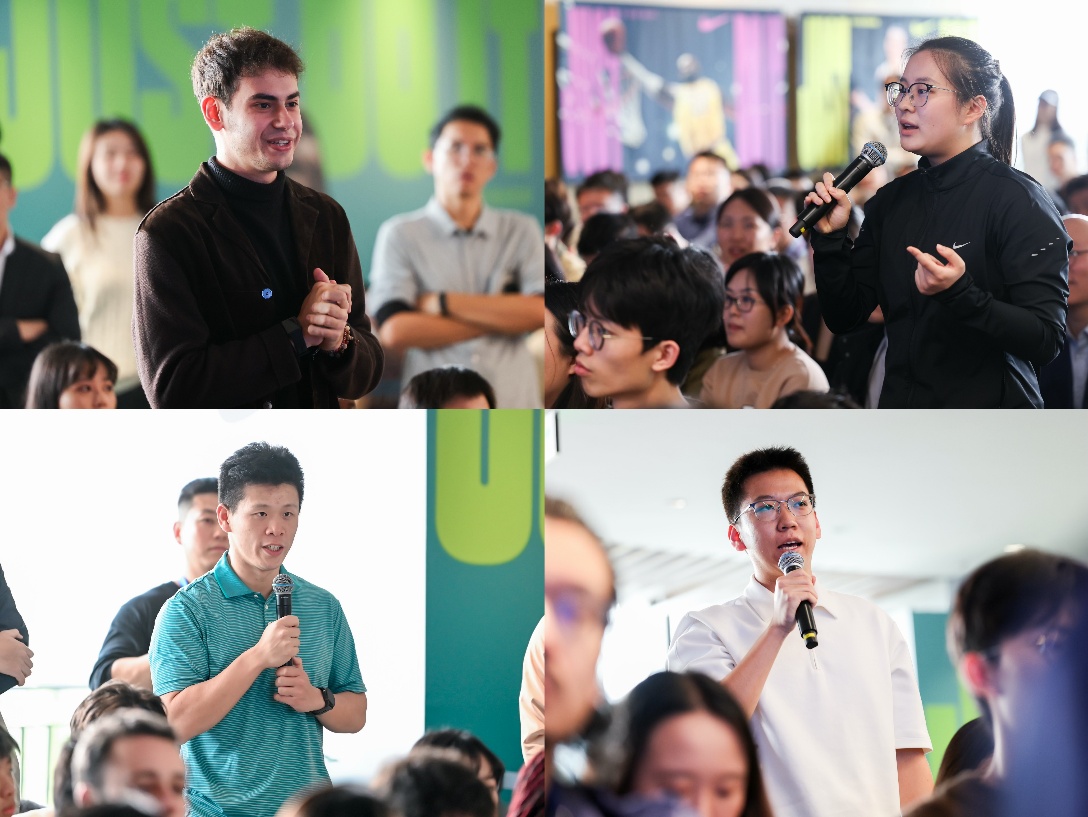 在互动交流环节,贺雁峰就同学们关心的多个话题进行了深入探讨,包括耐克“重返体育核心”战略的实施思路、如何在平衡运动员需求与商业目标中保持创新动力、如何将实验研究成果转化为实际产品创新、耐克如何推动可持续发展实践等问题。