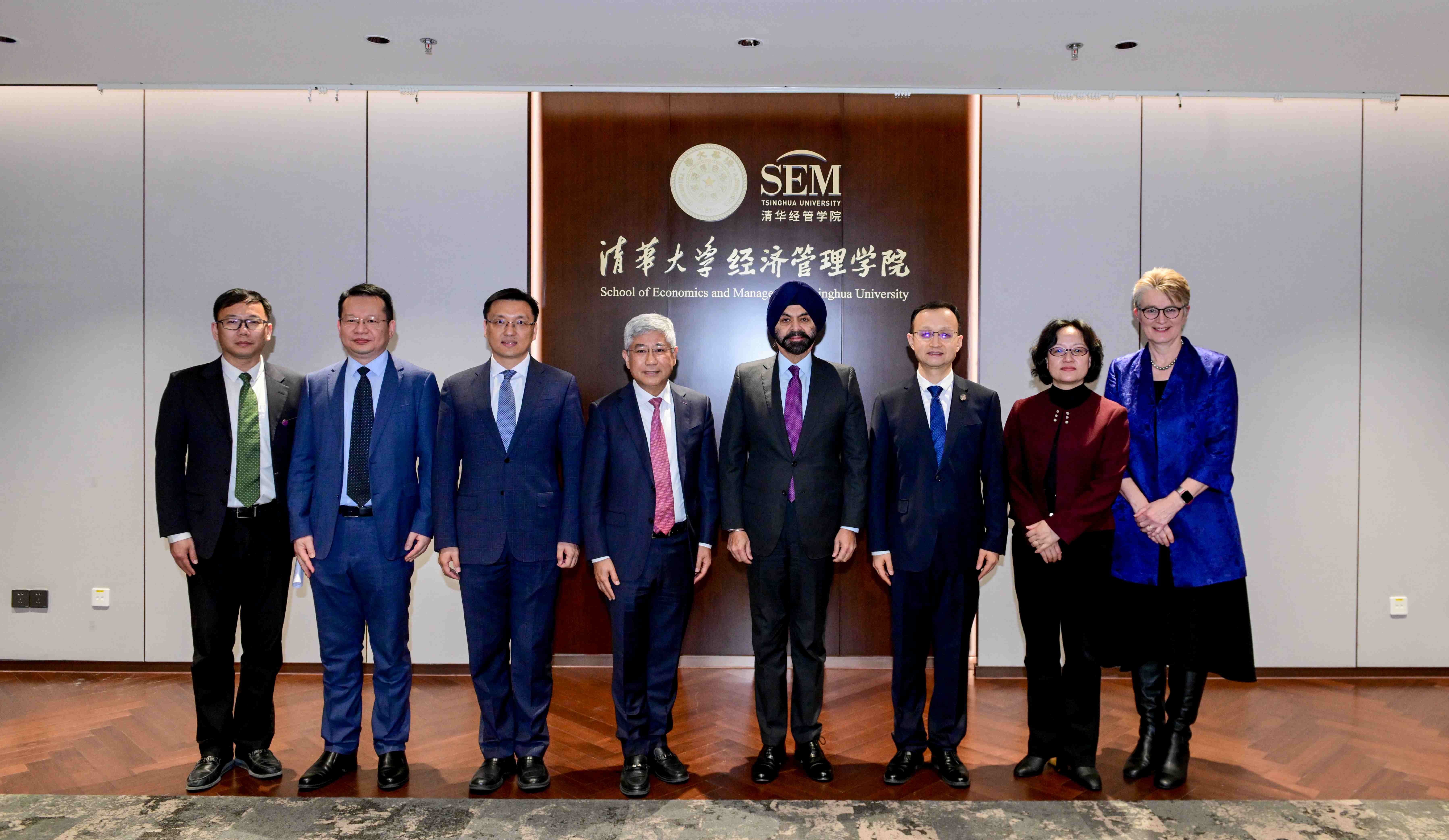 2025年12月8日,世界银行集团行长彭安杰(Ajay Banga)一行访问清华大学,清华大学党委副书记、副校长白本锋会见来宾,双方就加强研究及人才领域的合作进行交流。驻世界银行中国执行董事叶建第、国际金融公司代理地区副总裁艾伦·福勒姆(Allen Nanglefack Agandie Forlemu)、中国局局长华玛雅(Mara Warwick)等世界银行官员,以及财政部国际财金合作司副司长鲁劲一同来访。
