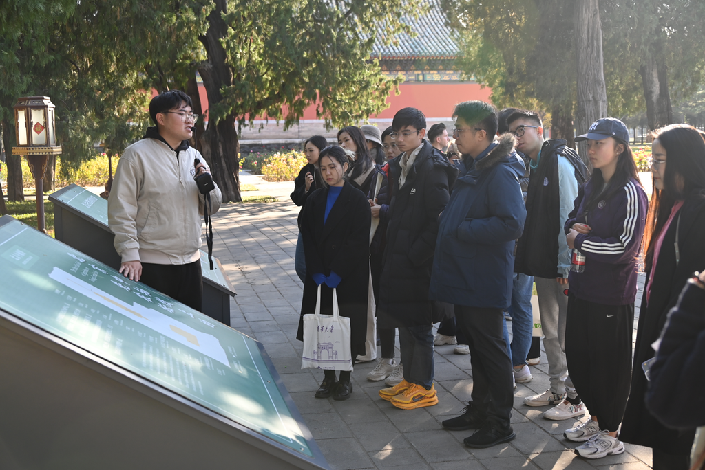 13日下午,大家在清华大学主楼前集合出发。简短的行前介绍后,师生统一乘车前往先农坛。途中,主持人以中英双语详细讲解了活动流程与寻宝任务规则,迅速点燃了中外学生的参与热情,为即将开始的文化探索之旅营造了良好氛围。