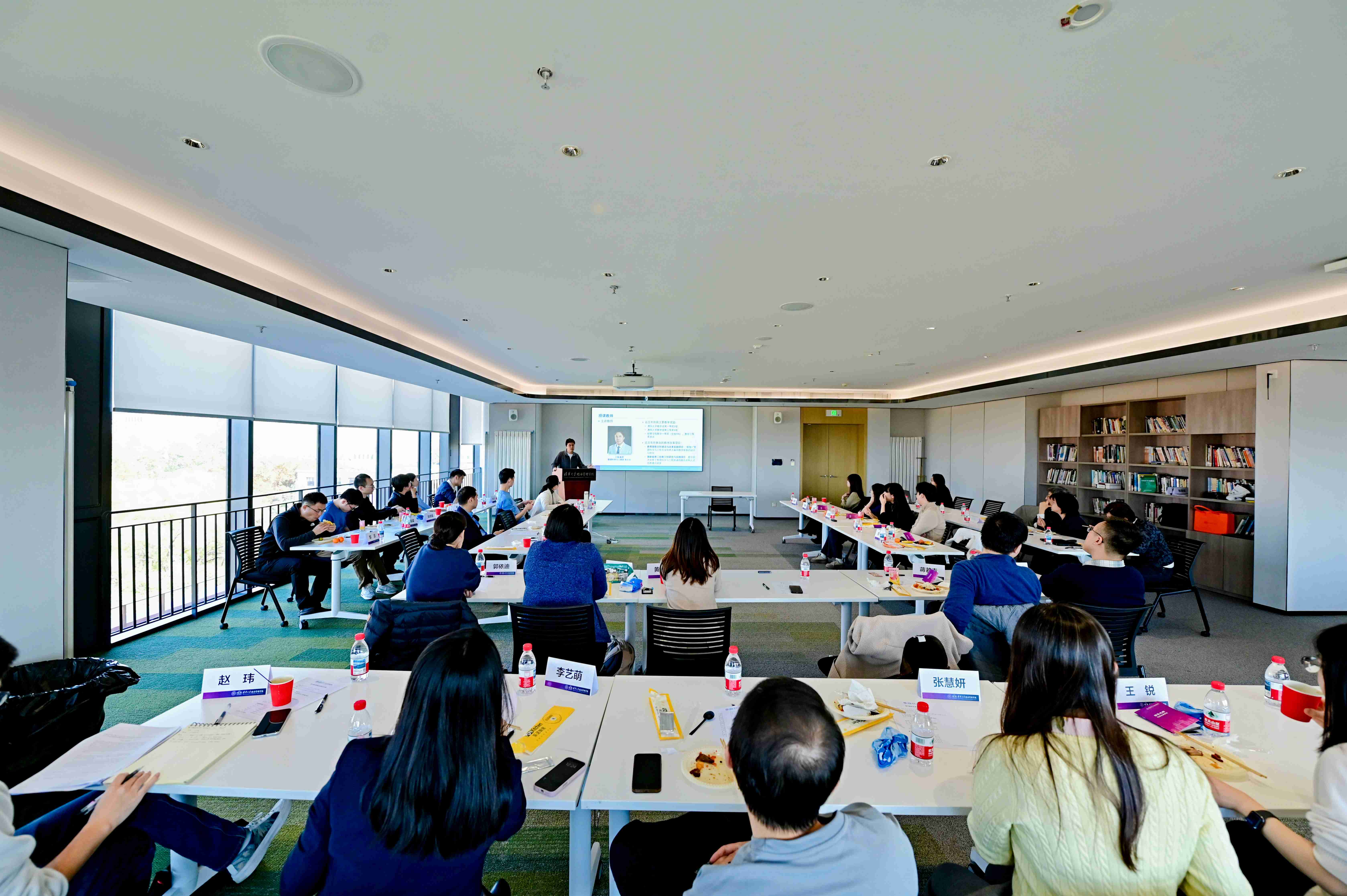 随后举行的教学研讨会上,管理科学与工程系主任卫强与金融硕士项目学术主任刘淳分别就课程设计理念、教学评估方法与课堂互动策略进行专题分享。卫强强调“以学生发展为中心”的教学导向,刘淳则结合多年教学实践,分享了提升课程前沿性与研究性的具体路径。自由交流环节中,与会教师围绕全英文授课、学生评价等实际问题展开热烈讨论。