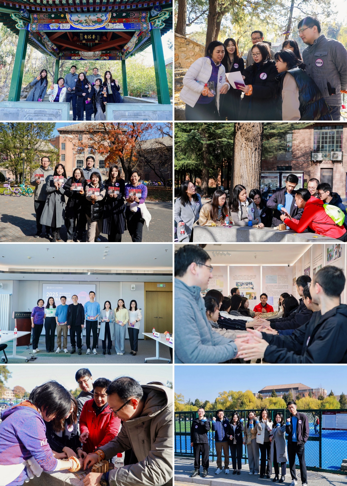 活动在充满活力的校园定向团建中拉开帷幕。青年教师以小组为单位,手持地图,穿梭于二校门、图书馆、大礼堂等标志性建筑之间,在轻松愉快的氛围中展开校园探索和趣味竞争。大家互相配合、出谋划策,不仅加深了彼此的了解,也增强了团队凝聚力。活动中,教师们纷纷在秋色斑斓的校园景致中合影留念,留下难忘瞬间,展现了“为祖国健康工作五十年”的清华体育精神,也为后续的交流研讨营造了积极活跃的氛围。