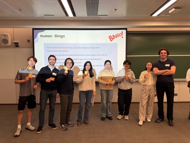 最后,在破冰游戏环节,Buddy与交换生交叉组队,共同参与了一系列破冰游戏。在“文化大考验”环节,各组通过协作完成答题挑战;在“人际宾果”环节,交换生与Buddy两人一组,结合各自的经历与特点共同完成Bingo任务卡。