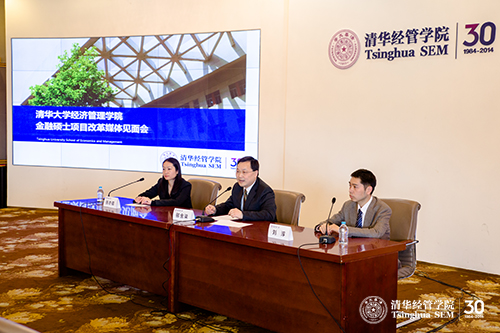 在舜德楼举行金融硕士项目改革媒体见面会,介绍金融硕士项目及招生的改革和方向。清华经管成人自拍视频