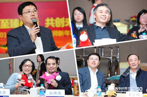 教师及高管培训中心全体职员欢聚一堂,畅叙发展、盘点过去、共话未来。高管培训中心主任薛镭教授首先向老师们汇报了高管培训中心2013年的工作,感谢各位老师在2013年的辛勤付出。30多位授课教师也纷纷发言。他们肯定了高管培训中心2013年所取得的成绩,并认为高管培训中心为老师们提供了一个教学、科研与企业管理实践紧密结合的平台,是他们乐于参与的教学项目。老师们还从中心发展、课程创新、授课经验等方面进行了交流。