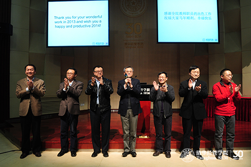 最后,院务会成员走上前台,共同感谢全院教师职员2013年辛勤和卓越的工作,并向大家致以新年的问候。(供稿:沟通办)